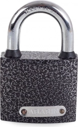 Mocny żeliwny korpus kłódki zapewnia stabilność i solidność, wytrzymuje obciążenia mechaniczne i wydłuża żywotność.