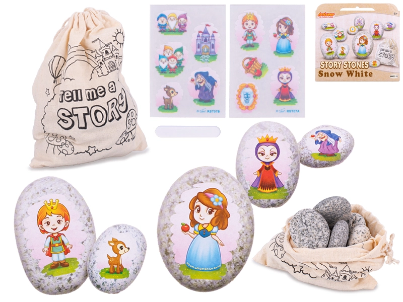 Zestaw zawiera 10 starannie dobranych naturalnych kamyków z naklejkami z postaciami i elementami z baśni KRÓLEWNA ŚNIEŻKA. Dzieci mogą odtwarzać ulubioną historię lub tworzyć własne wersje – idealne do zabawy w domu, aktywności szkolnych i w podróży.