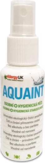 Uniwersalna woda czyszcząca Aquaint delikatnie pielęgnuje dłonie, skórę i usta – idealna dla niemowląt, dzieci i dorosłych. Zawiera wyłącznie wodę oraz kwas podchlorawy (HClO) w ilości < 0,01 %, jest bez alkoholu, bezzapachowa i dermatologicznie testowana. Doskonała w podróży, po jedzeniu i po skorzystaniu z toalety – czyści i odświeża bez wysuszania i bez pozostawiania resztek.