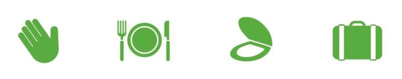 - Dłonie, skóra, usta; przed/po jedzeniu, po skorzystaniu z toalety, w podróży
