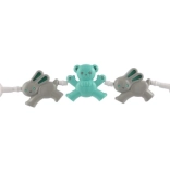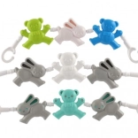 Łańcuszek do wózka z misiami i króliczkiem to idealny dodatek, który zajmie Twoje dziecko. Dzięki różnorodnym kształtom i wyrazistym kolorom pomaga rozwijać małą motorykę oraz zmysły malucha. Proste mocowanie za pomocą haczyków na obu końcach umożliwia szybkie i łatwe przymocowanie do wózka lub łóżeczka.
