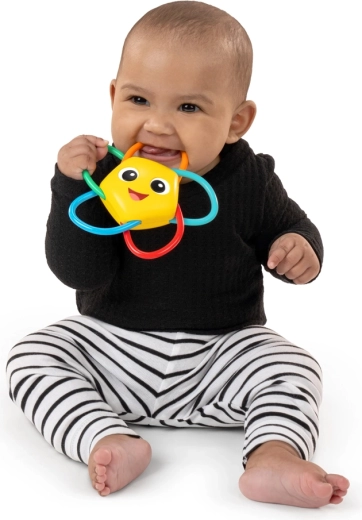 Urocza gwiazdka z przyjaznym uśmiechem przyciąga uwagę dziecka od pierwszego spojrzenia, a kolorowe pętle zachęcają do gryzienia i eksplorowania. Lekka konstrukcja i gładkie kształty są idealne dla małych rąk, w domu i w podróży.