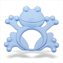 Niebieska żabka z centralnym uchwytem wspiera motorykę i przynosi ulgę wrażliwym dziąsłom.