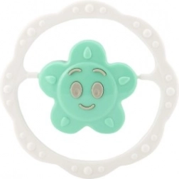 Kolorowa dziecięca grzechotka w kształcie gwiazdki lub kwiatka, która pomaga rozwijać umiejętności motoryczne oraz wzrokowe dziecka.