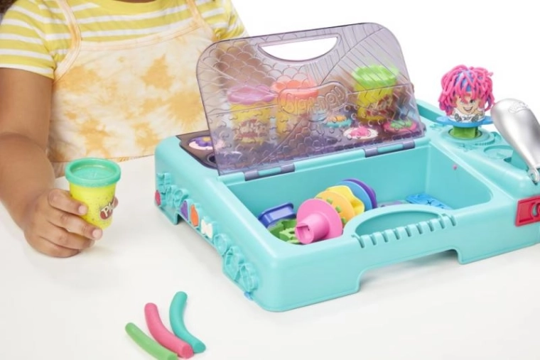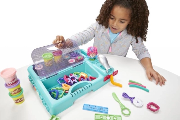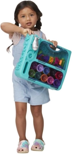 W tym uniwersalnym zestawie podróżnym na dzieci czeka mnóstwo akcesoriów oraz klasyczne kubeczki Play-Doh z masą plastyczną! Znajdziesz tu Fabrykę Zabawy i Salon Fryzjerski, wiele foremek i najróżniejszych gadżetów, więc śmiało puść wodze fantazji. Jest tu dużo miejsca na wszystko: kubeczki z masą możesz włożyć do przygotowanych otworów, narzędzia i foremki do schowka, na którym znajduje się pokrywa z fakturą, dzięki której stworzysz świetne wzory i będziesz się doskonale bawić. Cały zestaw jest praktyczny – zmieścisz w nim wszystko, co potrzebne, a dzięki kompaktowej rączce wygodnie zabierzesz go w podróż i urozmaicisz sobie weekend, na przykład u babci!
