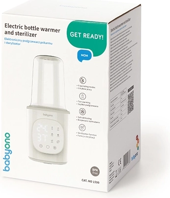 BabyOno 6w1 to wielofunkcyjny podgrzewacz i sterylizator, który radzi sobie z szybkim podgrzewaniem mleka, utrzymywaniem temperatury, podgrzewaniem posiłków w słoiczkach, bezpiecznym rozmrażaniem oraz sterylizacją parową. Dzięki mocy 200 W i precyzyjnej kontroli temperatury podgrzewa równomiernie i wygodnie – dla większości typów butelek i pojemników dla dzieci.