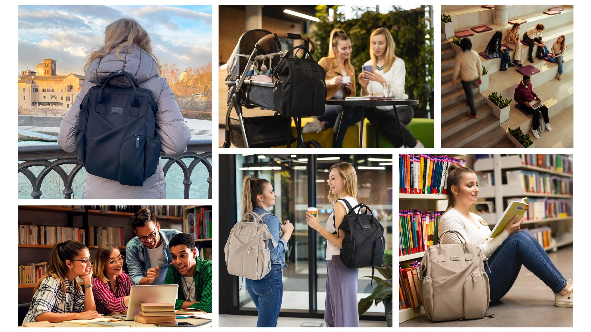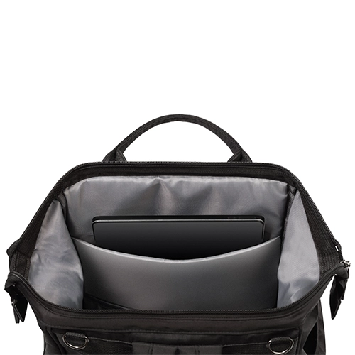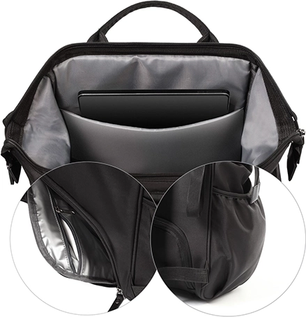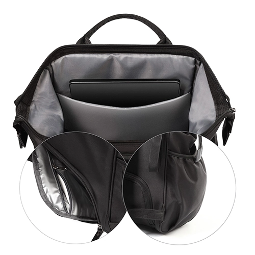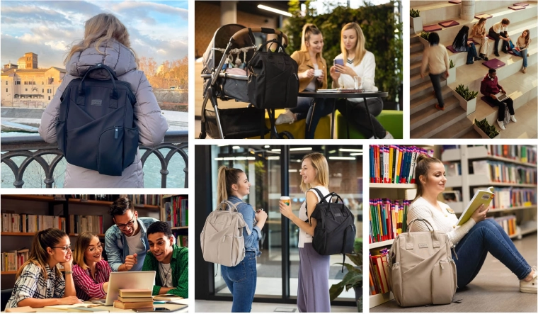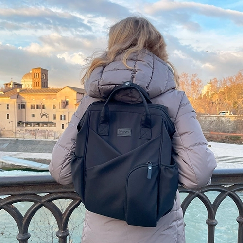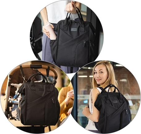 Noś plecak na plecach, w ręce lub przymocuj go do wózka, aby mieć wolne ręce. Regulowane szelki i krótkie uchwyty gwarantują komfort w każdej sytuacji.