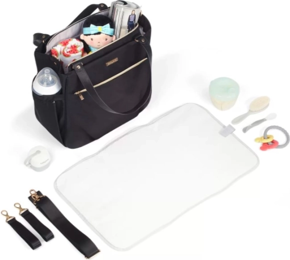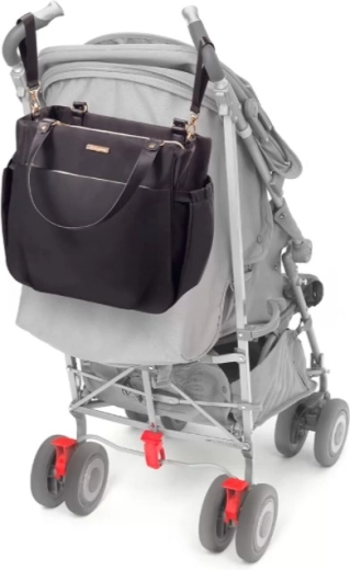 Wytrzymały i odporny materiał z gładką powierzchnią łatwo się czyści i sprosta wymaganiom codziennego użytkowania oraz zmiennym warunkom pogodowym. Wygodne uchwyty, odpinany pasek na ramię oraz boczne paski do zamocowania na wózku gwarantują maksymalną elastyczność noszenia. W zestawie znajduje się także praktyczna mata do przewijania dla wygodnej pielęgnacji w podróży.
