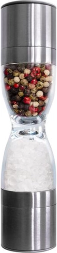 Odkryj sprytne rozwiązanie 2 w 1: ręczny młynek do soli i pieprzu TORO w eleganckim kształcie klepsydry. Każda strona jest przeznaczona na inne przyprawy, dzięki czemu doprawianie jest szybkie, czyste i precyzyjne. Praktyczne nakładki zapobiegają niechcianemu rozsypywaniu i utrzymują blat w czystości.