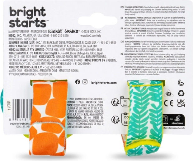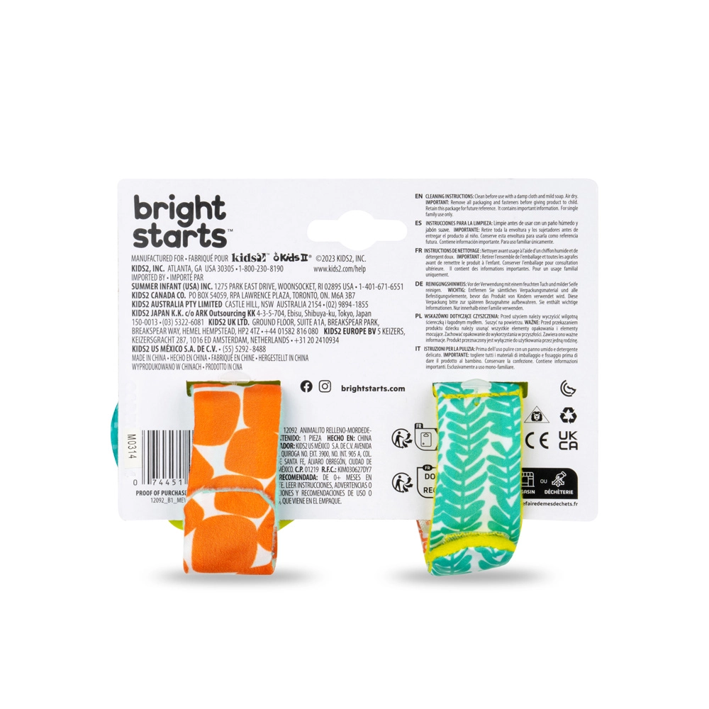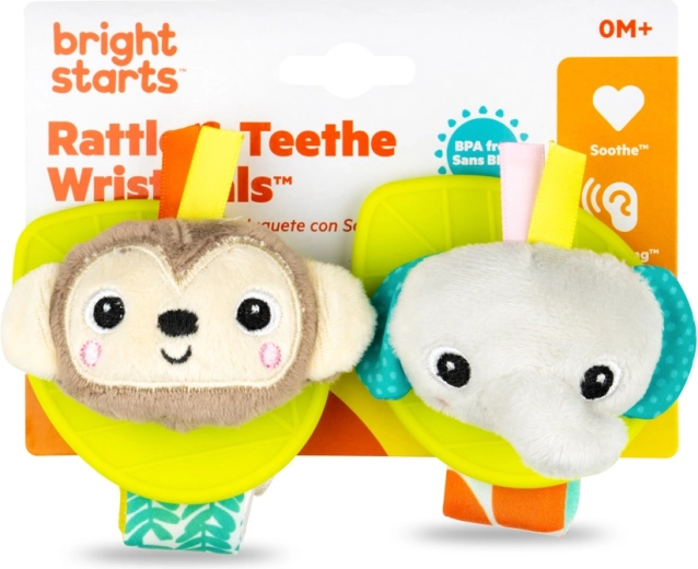 Urocze zabawki-nadgarstki BRIGHT STARTS sprawiają radość maluszkowi przy każdym ruchu. Każda ma miękkie pluszowe zwierzątko i bezpieczny gryzak przynoszący ulgę przy ząbkowaniu. Dzięki regulowanemu zapięciu na nadgarstku są zawsze pod ręką, wspierają motorykę małą i oferują kolorową, sensoryczną stymulację od urodzenia.
