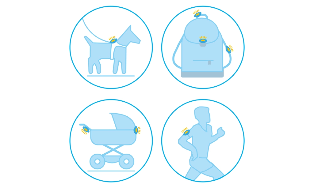 Przypnij lampkę do obroży, plecaka, wózka dziecięcego lub odzieży sportowej i bądź widoczny podczas biegu, spaceru czy drogi do domu.