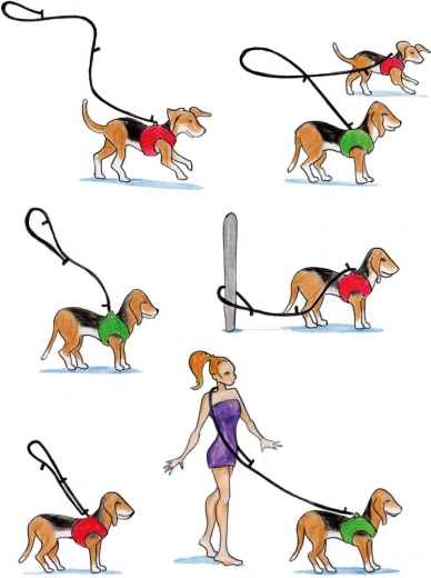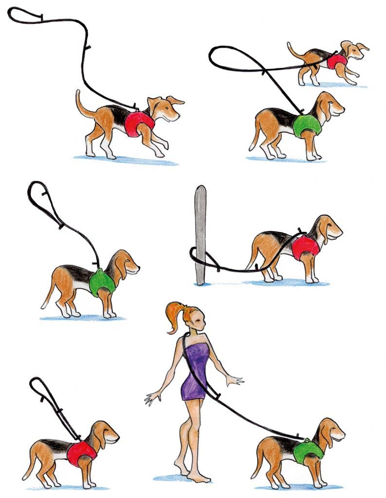 Możliwość podpięcia dwóch psów, zintegrowany uchwyt na woreczki