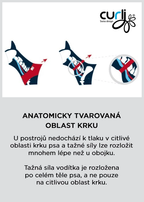 Anatomicznie ukształtowana strefa szyi i elastyczne szwy rozkładają siłę ciągu na klatkę piersiową, chroniąc wrażliwy obszar szyi i nie ograniczając naturalnego ruchu psa.