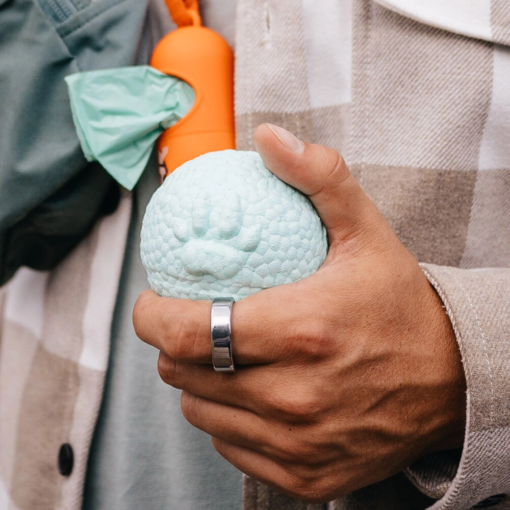Piłka pływa i jest dobrze widoczna na powierzchni wody, więc idealnie nadaje się do wodnego aportu. Radzi sobie również z ostrzejszym traktowaniem, bardzo niskimi temperaturami i długotrwałym użytkowaniem. Teksturowana powierzchnia pomaga mechanicznie czyścić zęby podczas zabawy. Gdy się zużyje, materiał jest w 100% poddawany recyklingowi, co ucieszy także miłośników zrównoważonych rozwiązań.