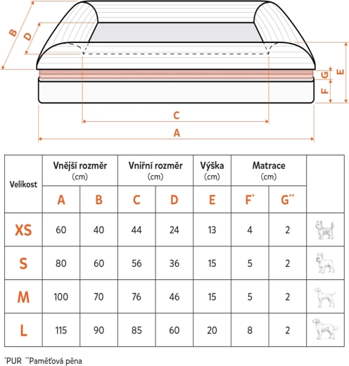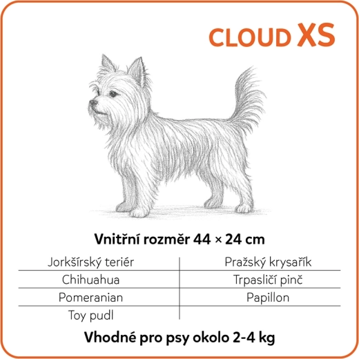 Cloud XS to komfortowe, ortopedyczne legowisko dla małych psów i szczeniąt, które zapewnia prawidłowe podparcie ciała także podczas długiego snu. Dwuwarstwowa konstrukcja (4 cm PUR + 2 cm pianki pamięciowej CertiPUR-US) równomiernie rozkłada nacisk, tłumi wstrząsy i przynosi wyraźną ulgę obciążonym stawom oraz kręgosłupowi. Wysokie boki (13 cm) podpierają głowę i tworzą spokojne, przytulne i osłonięte miejsce do wypoczynku.
