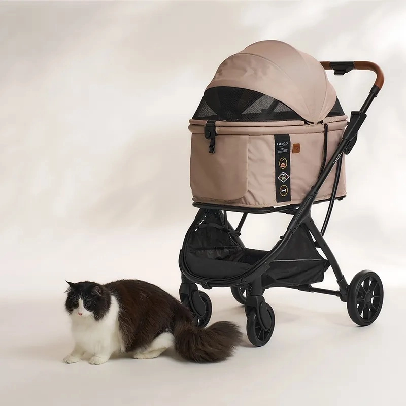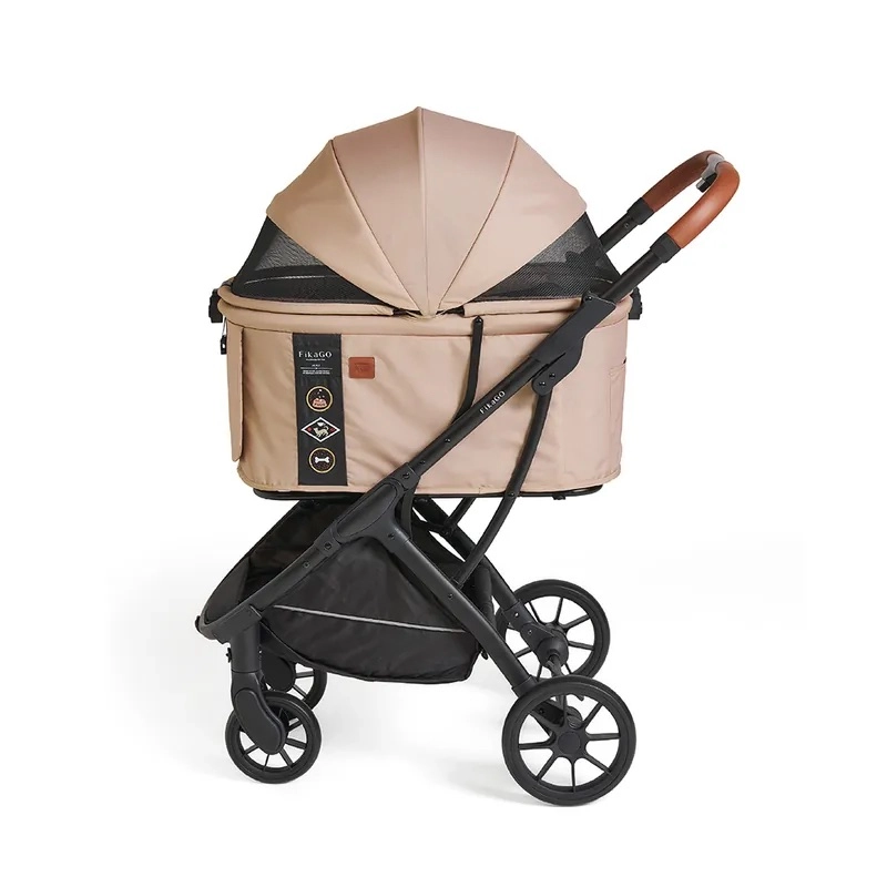 FIKAGO Agile Huggy w kolorze beżowym to przemyślany wózek dla kotów i psów, który łączy styl, praktyczność i bezpieczeństwo. Dzięki lekkiej aluminiowej ramie i szybkiemu składaniu jedną ręką łatwo schowasz go do bagażnika auta, a po złożeniu sam stoi. Ekstra duża gondola zapewnia pupilom maksymalny komfort, a wodoodporna budka z materiałów z recyklingu chroni przed słońcem i kurzem.