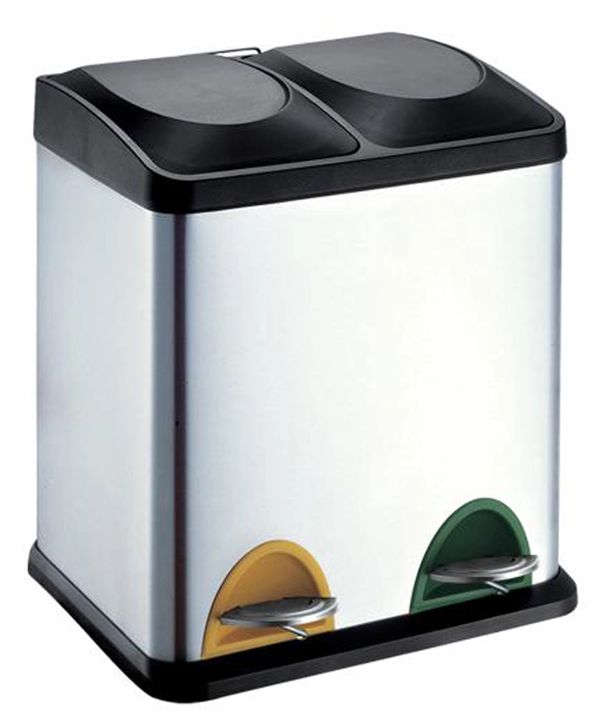 Elegancki kosz ze stali nierdzewnej do segregacji odpadów o łącznej pojemności 30 l (2×15 l) jest idealny do kuchni lub biura. Dwa oddzielne wewnętrzne pojemniki ułatwiają segregację odpadów, a pedałowe sterowanie zapewnia higieniczne otwieranie pokrywy bez użycia rąk. Kompaktowe wymiary oszczędzają miejsce. Trwała powierzchnia ze stali nierdzewnej łatwo się czyści i wygląda nowocześnie w każdym wnętrzu.