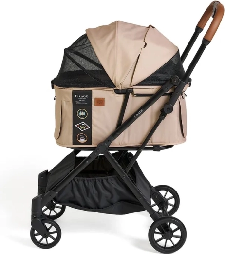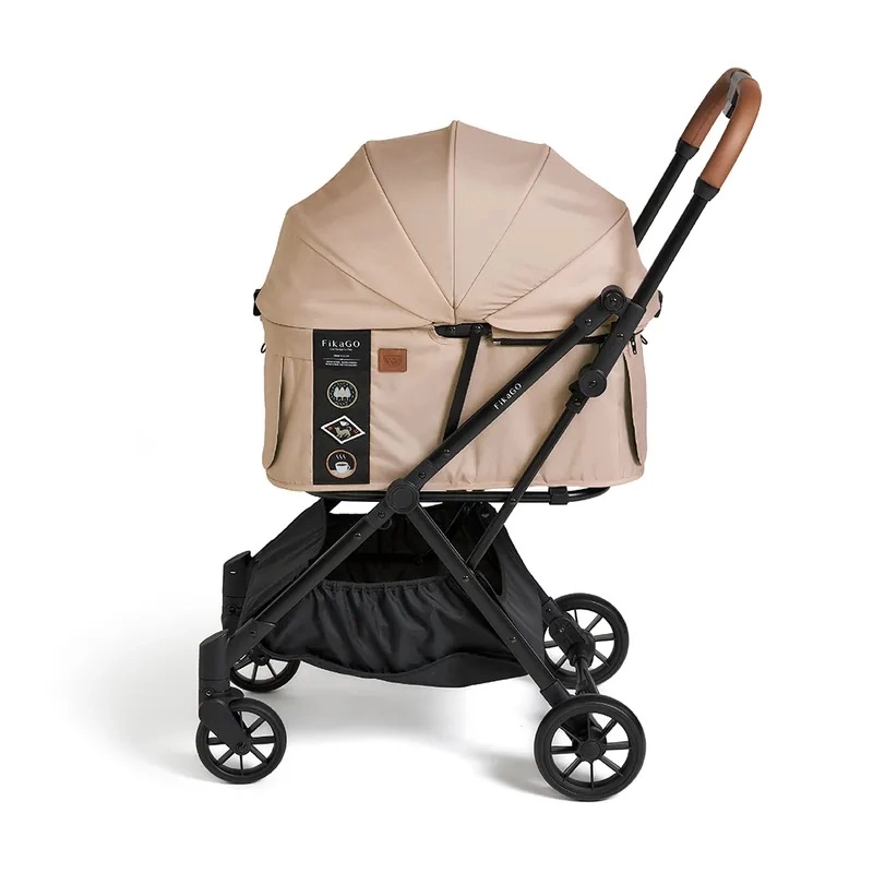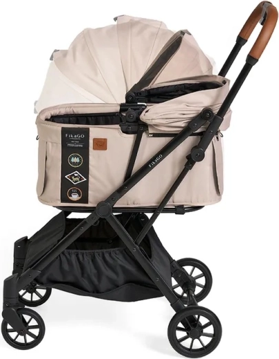 Fikago Hygge Beige to stylowy i praktyczny wózek dla kotów i psów, łączący natychmiastowe składanie, niską wagę i wysoki komfort dla zwierzęcia. Budkę można otwierać w kierunku jazdy i przeciwnie do kierunku jazdy, siateczkowe okienko zapewnia przepływ powietrza, a gondola oferuje dużo miejsca także dla większego pupila. W środku znajduje się zabezpieczenie do przypięcia dla spokojnej i bezpiecznej jazdy.