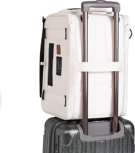 Do podróży samolotem i codziennych przejazdów: kompaktowe wymiary 43 × 27 × 28 cm spełniają wymagania większości linii lotniczych dotyczące umieszczenia pod siedzeniem. Odpinane paski umożliwiają noszenie torby wygodnie na ramieniu lub jako plecak, aby mieć wolne ręce. Wewnątrz znajduje się klamra bezpieczeństwa zapobiegająca niechcianemu wyskoczeniu oraz miękkie, wyściełane dno dla spokojnego odpoczynku.