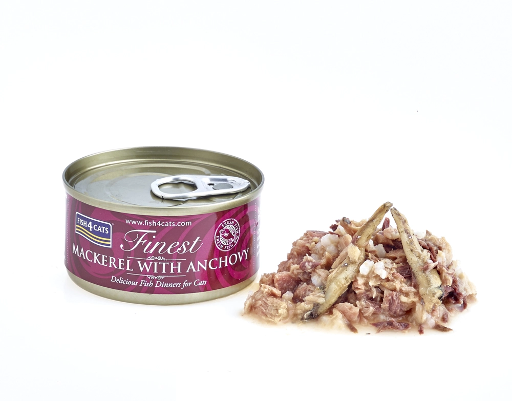 Nawet 70% ryb (makrela i anchois) dostarcza wysokiej jakości białka i naturalne składniki odżywcze, które koty uwielbiają i które ich organizm łatwo wykorzystuje.