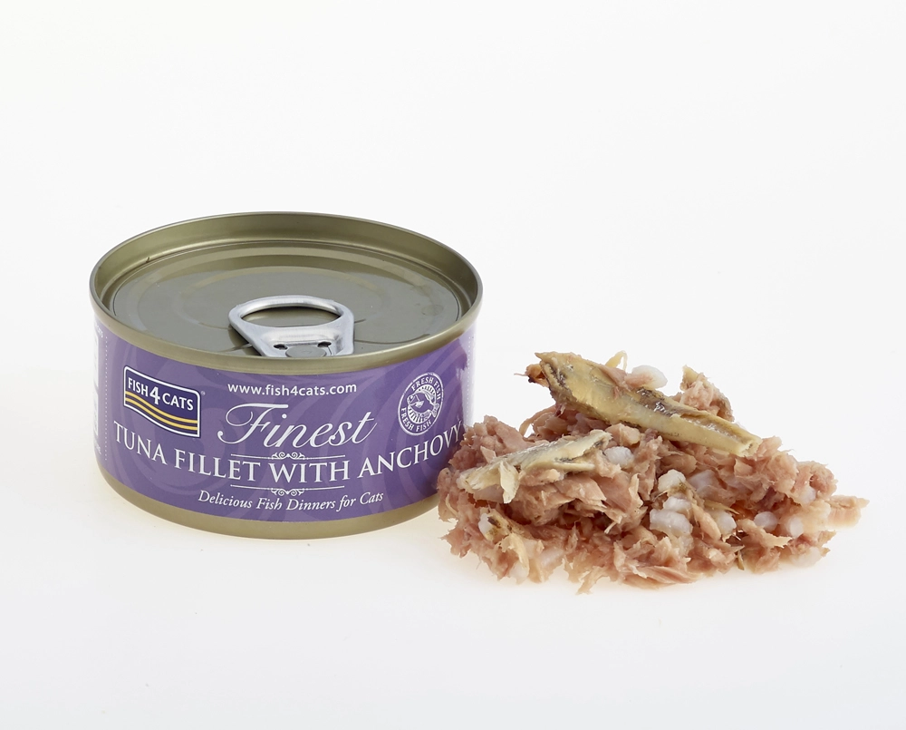 Wysokiej jakości mokra karma FISH4CATS Finest z tuńczykiem i anchois to idealny wybór dla kotów, które kochają smak ryb. Wysoki udział ryb dostarcza naturalnych składników odżywczych, wspiera zdrową skórę i lśniącą sierść oraz sprzyja ogólnej witalności dzięki omega-3.
