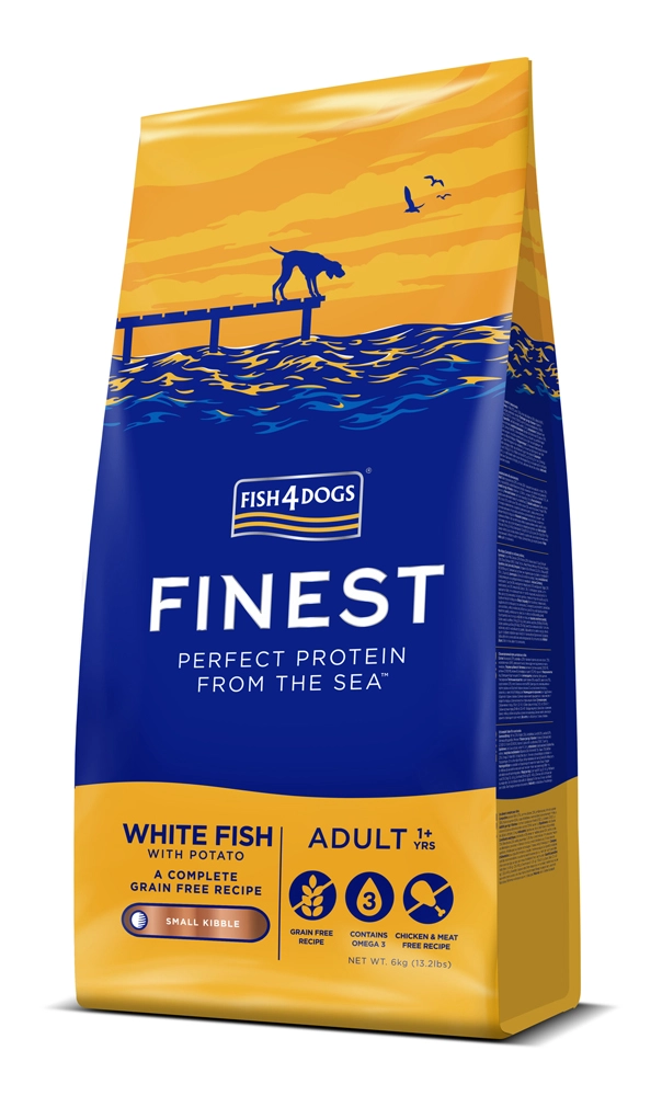Szukasz smacznej i delikatnej karmy dla małych dorosłych psów? Fish4Dogs z białej ryby z ziemniakami to zbilansowana, bezzbożowa receptura oparta na wysokiej jakości surowcach z sezonowych białych ryb z północnego Atlantyku. Połączenie mączki z łososia i oleju z łososia dostarcza naturalne omega-3 dla witalności, skóry i sierści, a ziemniaki i skrobia grochowa zapewniają lekkostrawność.