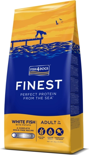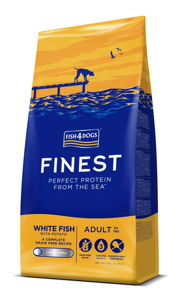 Karma FISH4DOGS z białej ryby z ziemniakami to zbilansowana sucha karma bezzbożowa, wyprodukowana z sezonowych gatunków białych ryb z północnego Atlantyku. Dzięki zawartości mączki i oleju z łososia jest bogata w omega-3, które wspierają zdrową skórę, lśniącą sierść oraz ogólną kondycję. Lekkostrawne białko rybne i ziemniaki są delikatne dla przewodu pokarmowego i sprzyjają dobrej przyswajalności.