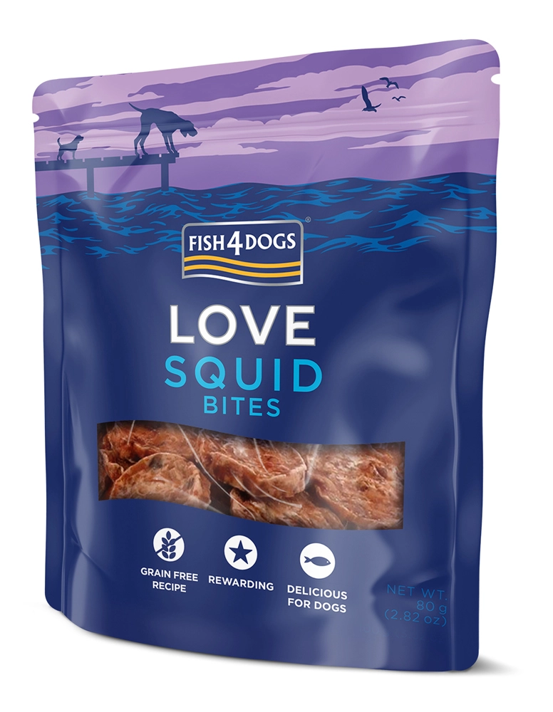 Zaoferuj swojemu psu pyszną i zdrową nagrodę: przysmaki do żucia ze 100% suszonej kałamarnicy od Fish4Dogs. Bez zbóż, kurczaka, jagnięciny i jaj, tylko czysty morski białko o intensywnym aromacie i smaku, które uwielbiają nawet bardziej wymagające psy.