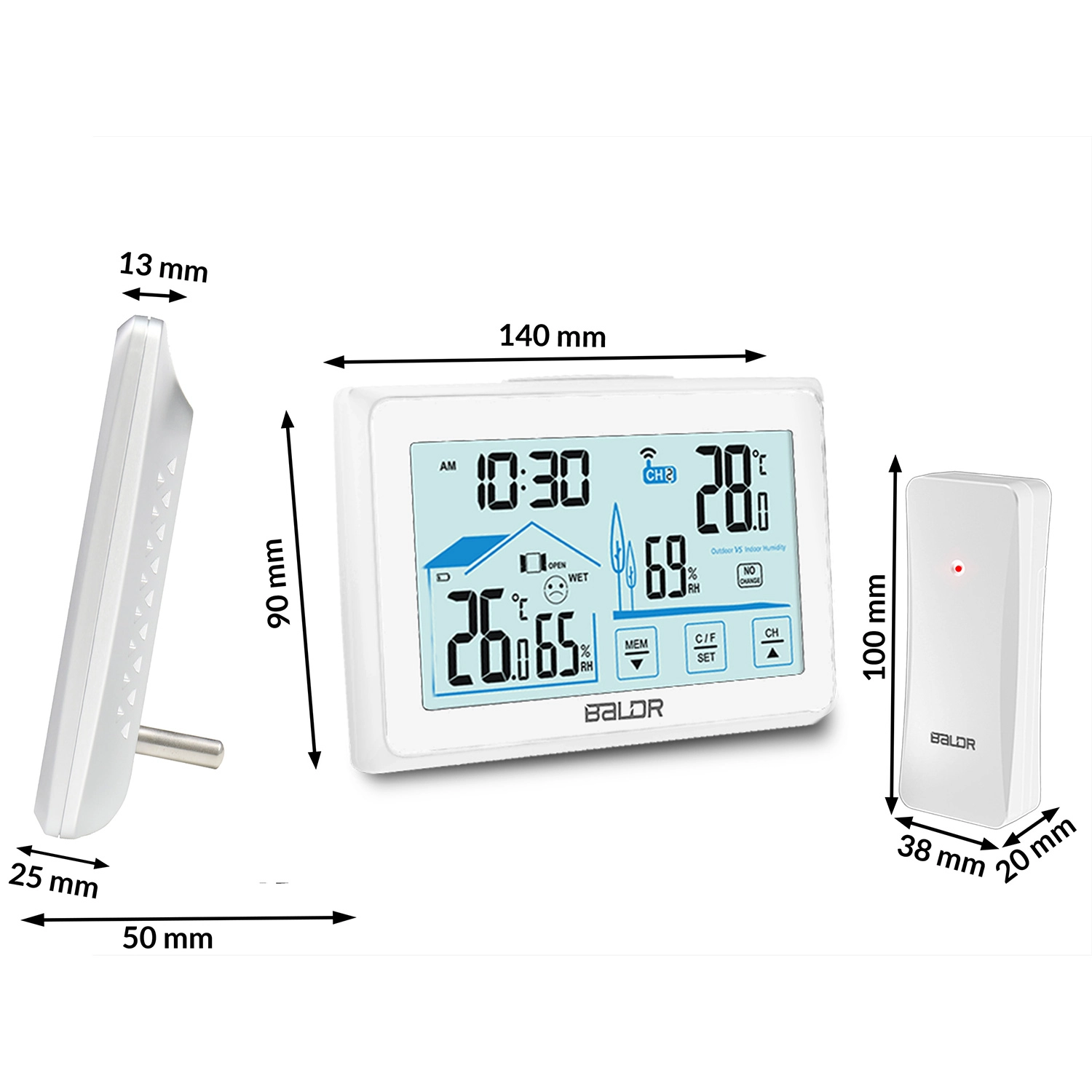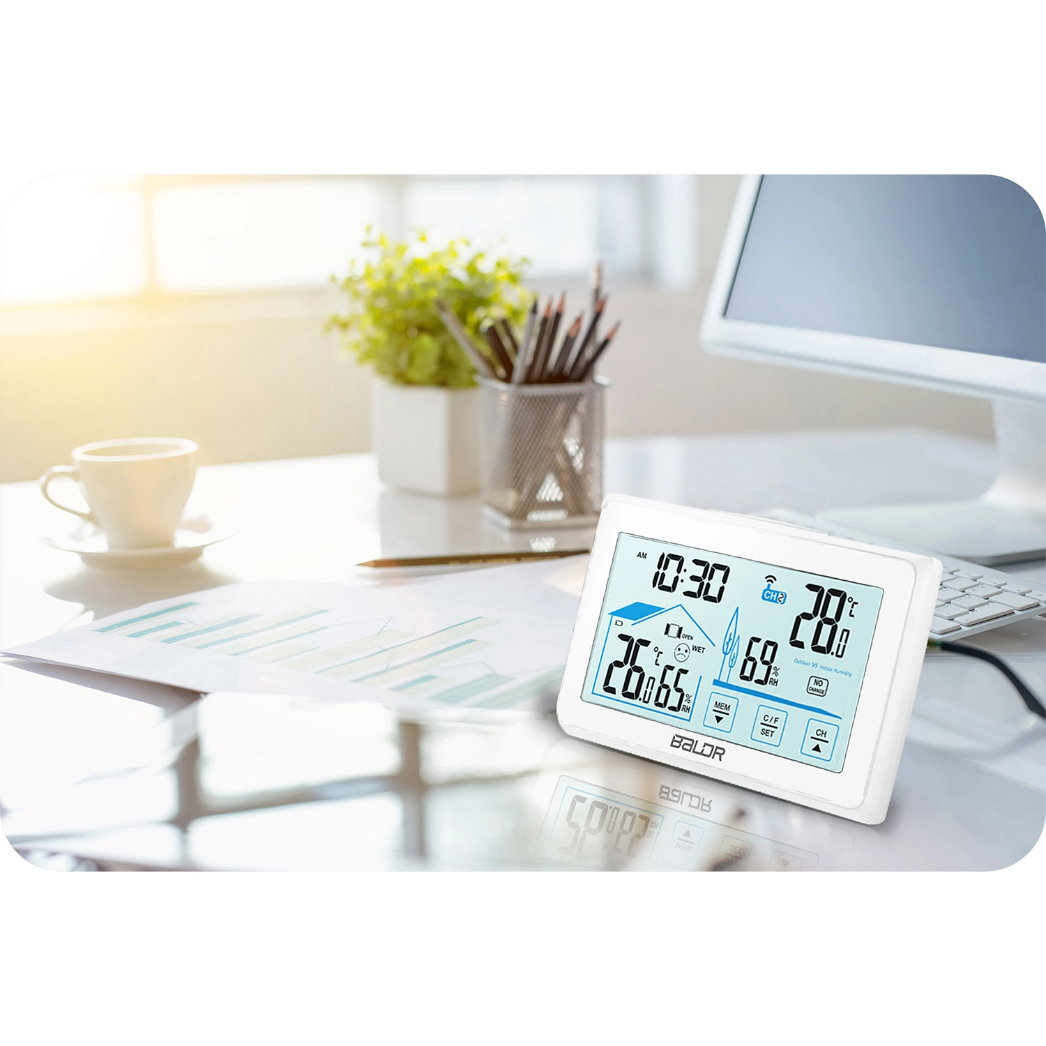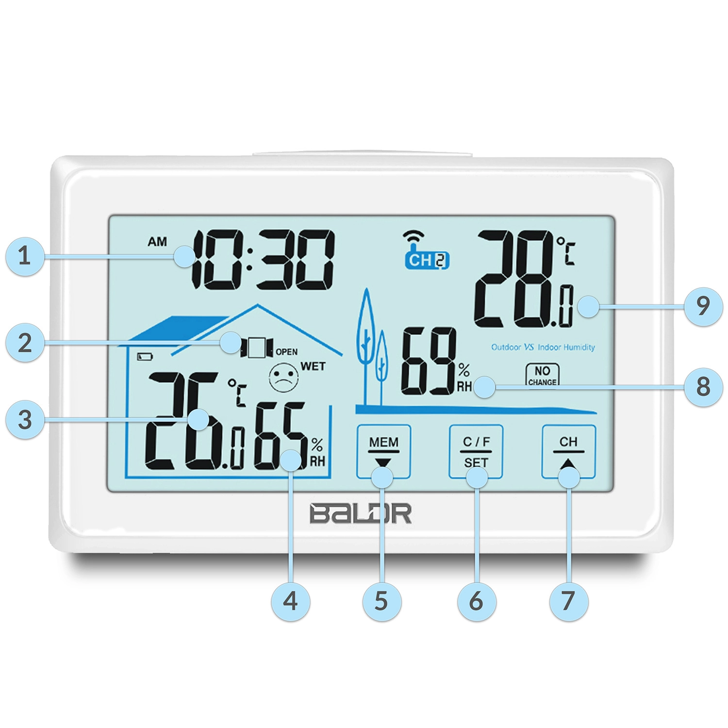 Ta nowoczesna biała stacja łączy precyzyjny pomiar i czytelny ekran, zapewniając natychmiastowy podgląd klimatu w domu i na zewnątrz. Monitoruj temperaturę, wilgotność, ikony trendów oraz strefę komfortu, aby łatwo utrzymywać zdrowe warunki w pomieszczeniach. Automatyczna synchronizacja z czujnikiem i możliwość dodania kolejnych kanałów zapewniają elastyczny monitoring.