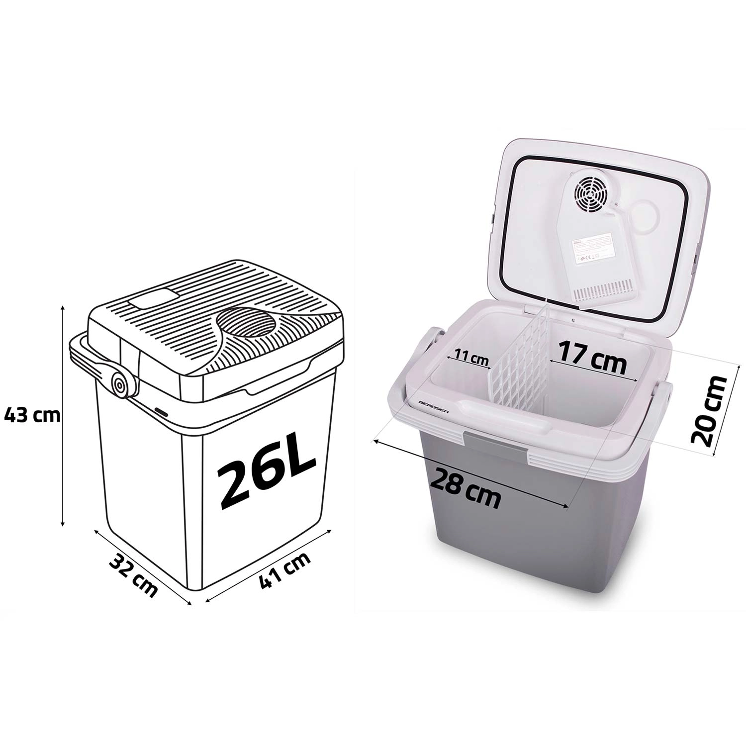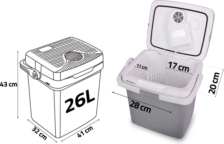 Dzięki zasilaniu 12 V (samochód) i 230 V (sieć) jest gotowa do użycia wszędzie. Zintegrowany wentylator cyrkuluje powietrze dla równomiernego chłodzenia zawartości, a uszczelnienie pokrywy z praktyczną blokadą w rączce pomaga utrzymać stabilną temperaturę. W zestawie znajduje się kratka dzieląca dla lepszej organizacji żywności – idealna na owoce, napoje czy przekąski.