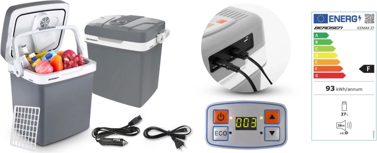 Lekka turystyczna lodówka z funkcją chłodzenia i podgrzewania oraz pojemnością 26 litrów utrzymuje żywność i napoje w idealnej temperaturze w podróży. Oferuje elektroniczny wyświetlacz z możliwością ustawienia temperatury docelowej, tryby ECO i Normal, zasilanie 12 V do auta i 230 V do gniazdka oraz cichą pracę 39 dB. Dzięki zintegrowanemu wentylatorowi chłodzenie jest równomierne, a praktyczna składana rączka ułatwia przenoszenie.