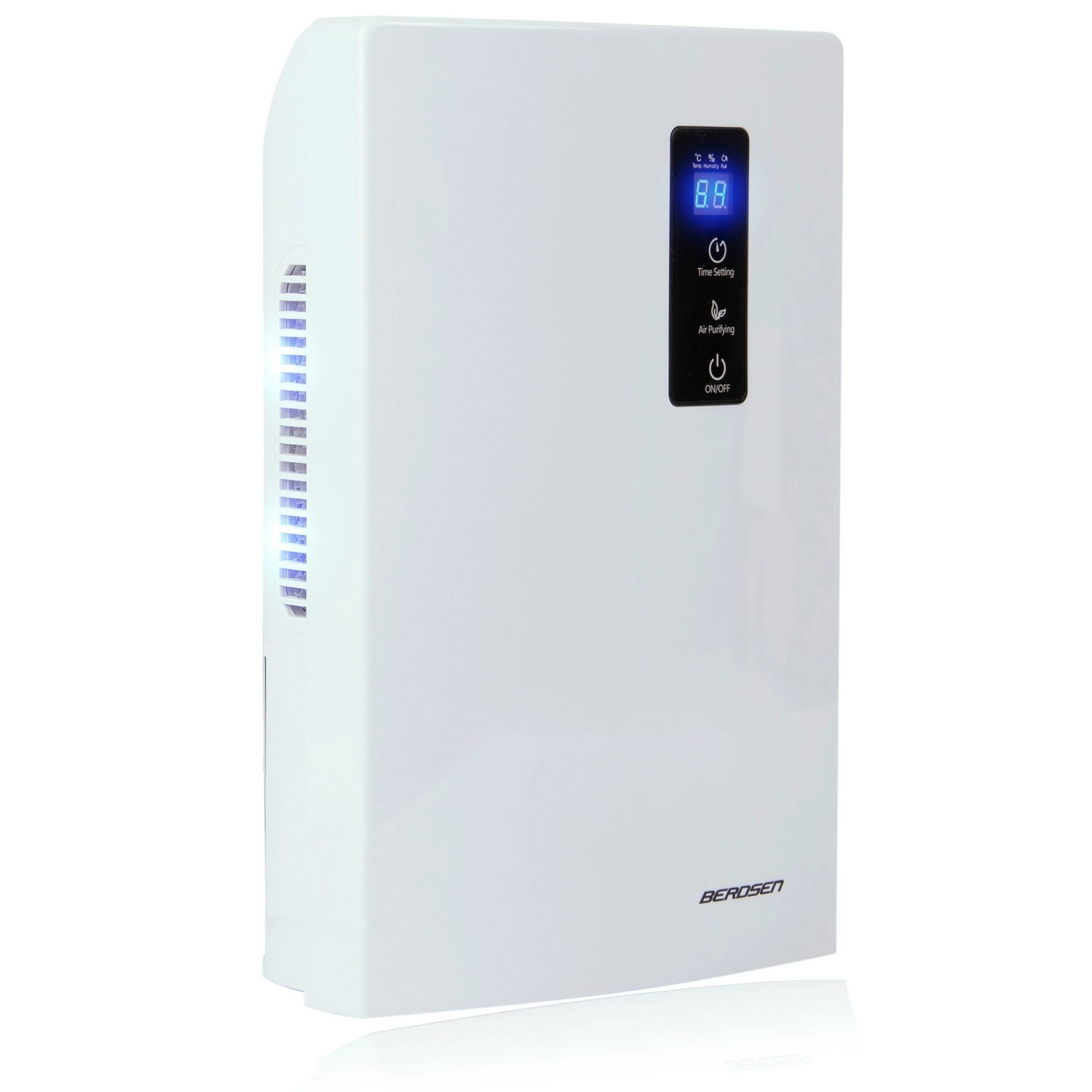 Termoelektryczna technologia Peltiera skrapla wilgoć na zimnym elemencie i odprowadza ją do zbiornika 2 l. Po jego napełnieniu urządzenie automatycznie się wyłącza, a kontrolka zmienia kolor. Tryb UV Air Purifying aktywuje lampy, które wspierają bardziej higieniczne powietrze. Sterowanie jest proste dzięki panelowi dotykowemu z wyświetlaczem LED, na którym ustawisz także timer 1–24 h.