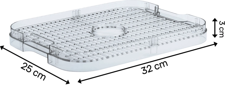 Przezroczysty plastik ułatwia wizualną kontrolę procesu suszenia, a po użyciu wystarczy opłukać tacę pod bieżącą wodą.