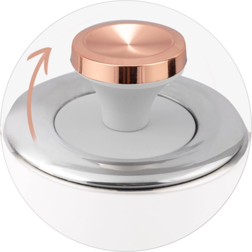 - Design: ponadczasowy styl retro w odcieniu złamanej bieli z różowo-złotymi akcentami – elegancki dodatek do kuchni.