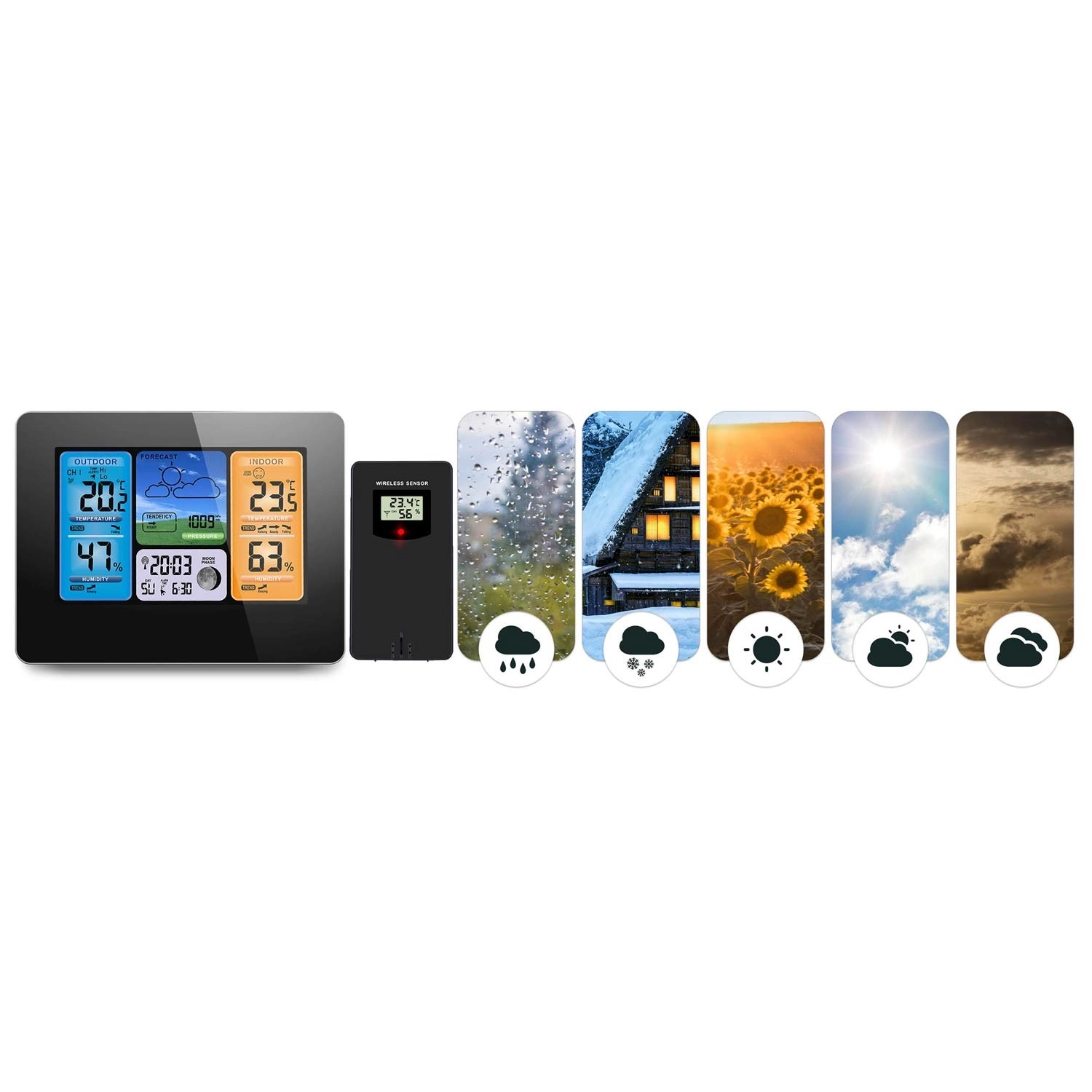 - Cyfrowa bezprzewodowa stacja pogodowa z kolorowym LCD