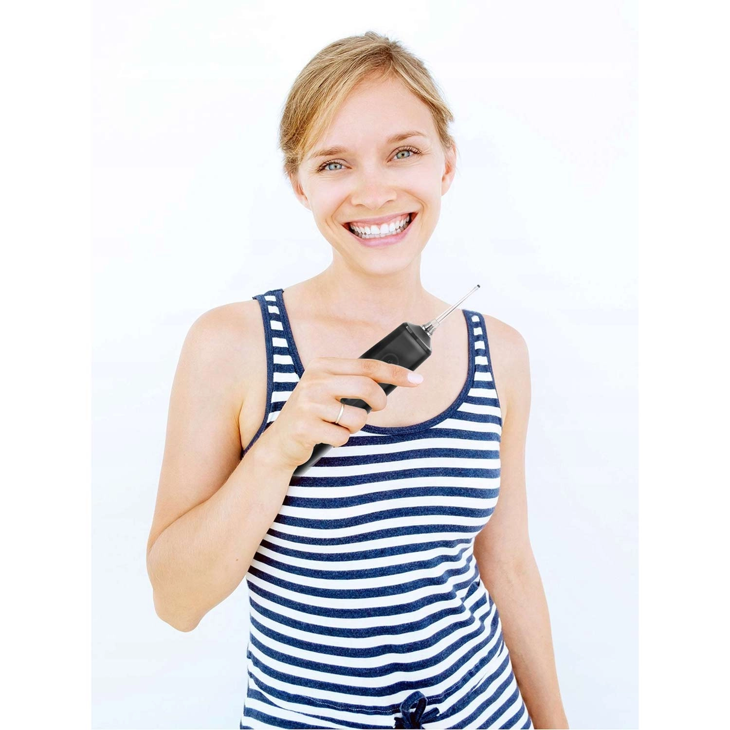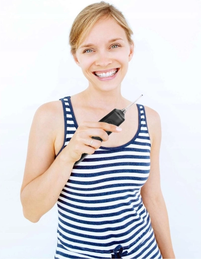 Wąska, lekko wygięta dysza kieruje silny, ale łagodny strumień wody dokładnie tam, gdzie jest potrzebny – między zęby i wzdłuż linii dziąseł. Skutecznie zastępuje nić dentystyczną.