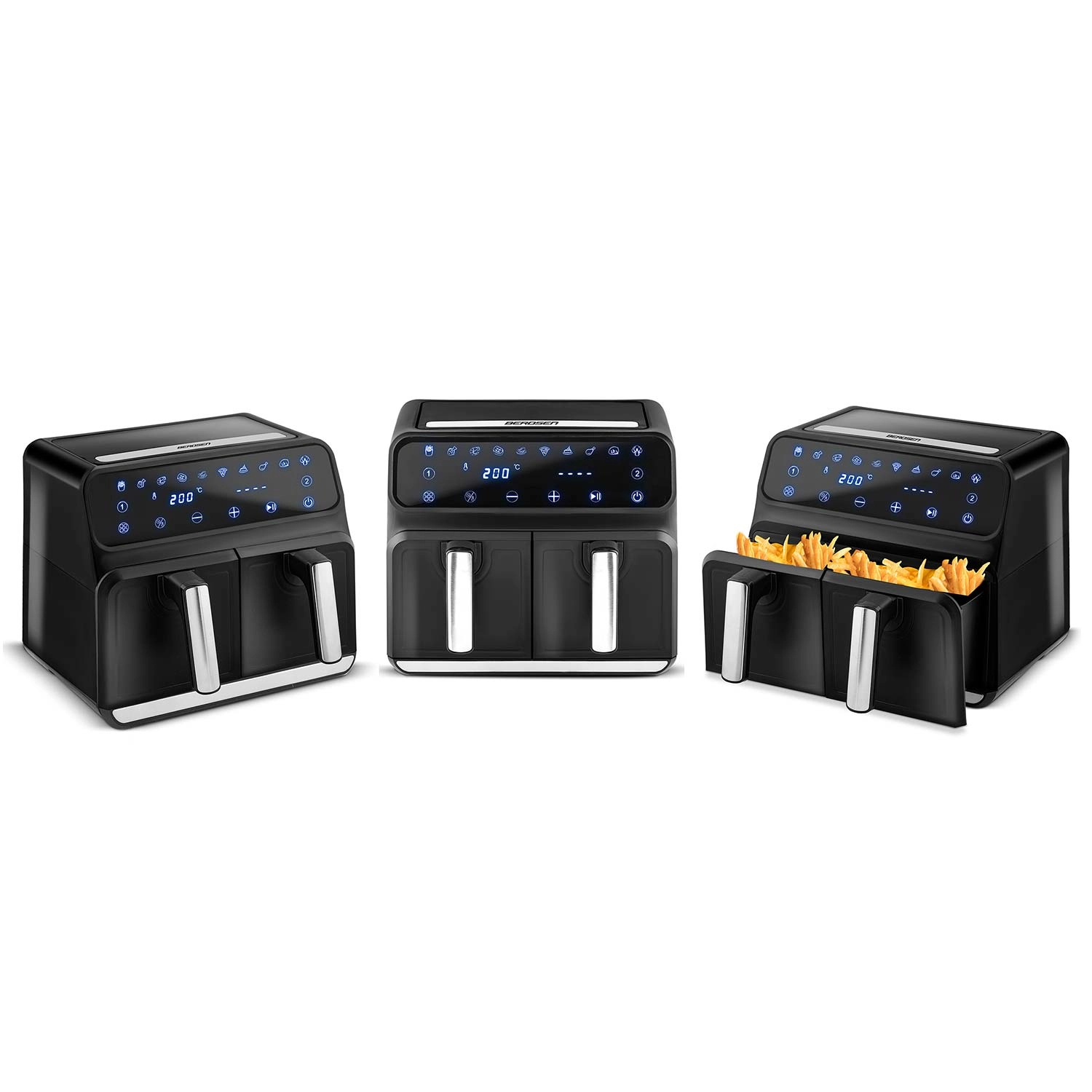 Dwa oddzielne kosze pozwalają przygotować różne potrawy w tym samym czasie – na przykład chrupiące frytki i soczyste nuggetsy. Oszczędzasz czas i energię bez mieszania smaków.