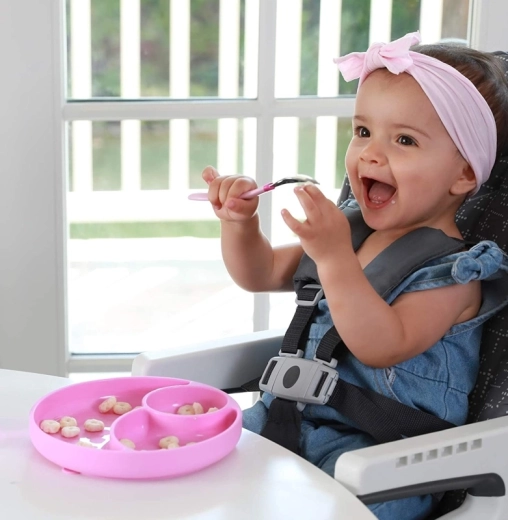 Silna przyssawka utrzymuje talerz na miejscu nawet przy pierwszych próbach samodzielnego jedzenia, zmniejszając bałagan i zwiększając pewność dziecka.