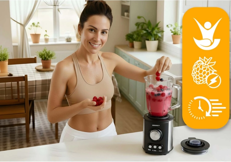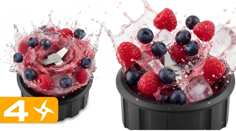 Intuicyjne sterowanie z podświetlanymi przyciskami i pokrętłem pozwala szybko wybrać idealny tryb: Smoothie do kremowych napojów, Ice Crush do lodu oraz Pulse do precyzyjnego siekania. Antypoślizgowe nóżki zapewniają stabilność, a zabezpieczenia chronią przed nieprawidłowym montażem i przegrzaniem.