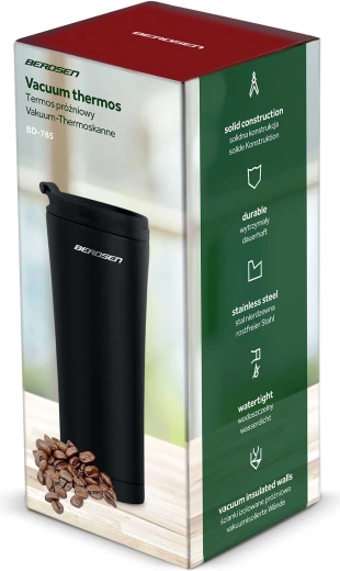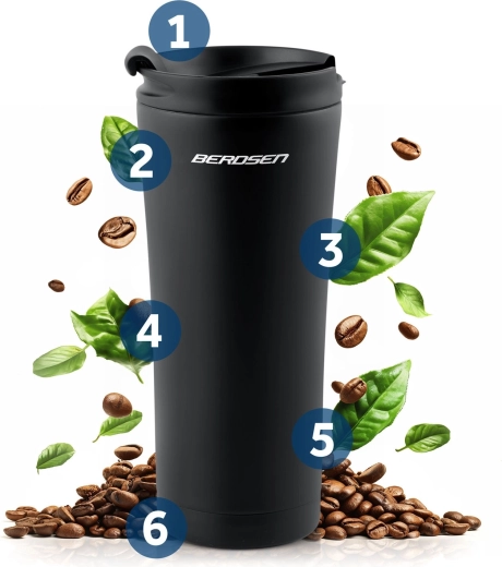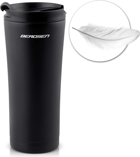 Lekki i wytrzymały kubek termiczny BERDSEN 470 ml ze stali nierdzewnej utrzymuje napoje gorące do 12 godzin i zimne do 24 godzin. Posiada podwójne ścianki z izolacją próżniową, szczelną pokrywkę z blokadą przeciwko rozlaniu oraz ergonomiczny kształt, który doskonale leży w dłoni i pasuje do uchwytu w samochodzie. Idealny w podróży, na sport i do biura.