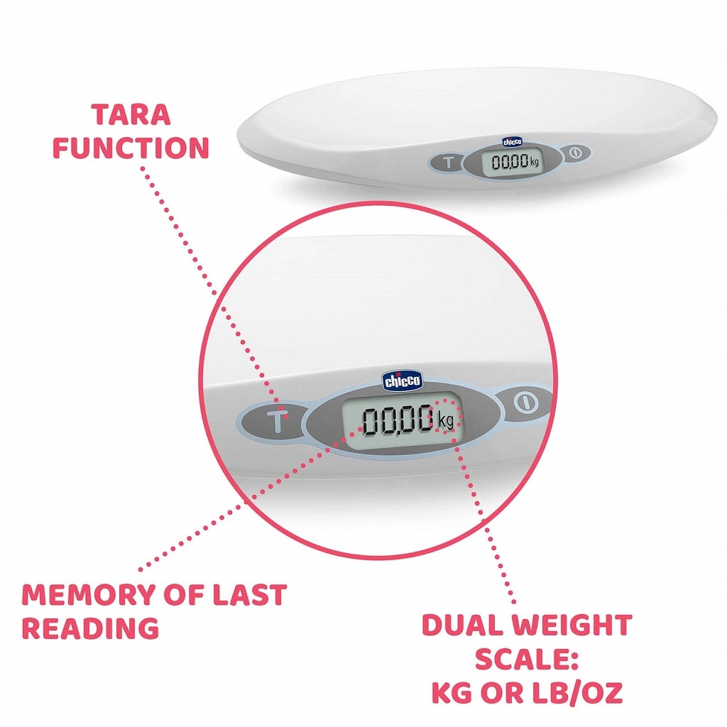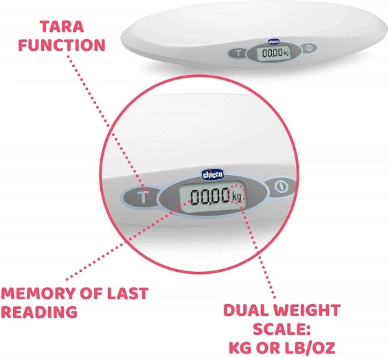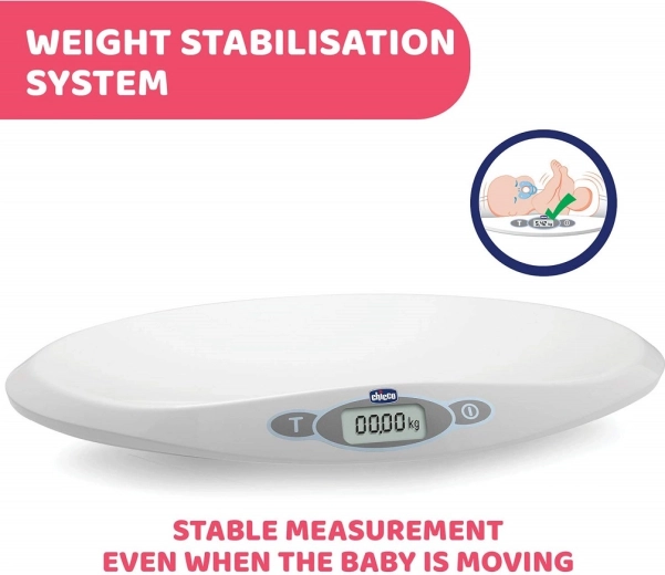 Cyfrowa waga dziecięca Chicco Baby Comfort niezawodnie zważy niemowlę od pierwszych dni życia. Oferuje zakres 30 g do 20 kg, dokładne ważenie co 10 g, stabilizację pomiaru przy ruchu oraz czytelny wyświetlacz LCD. Dzięki pamięci ostatniego pomiaru i zintegrowanej linijce do 55 cm śledzenie wzrostu jest proste i wygodne.