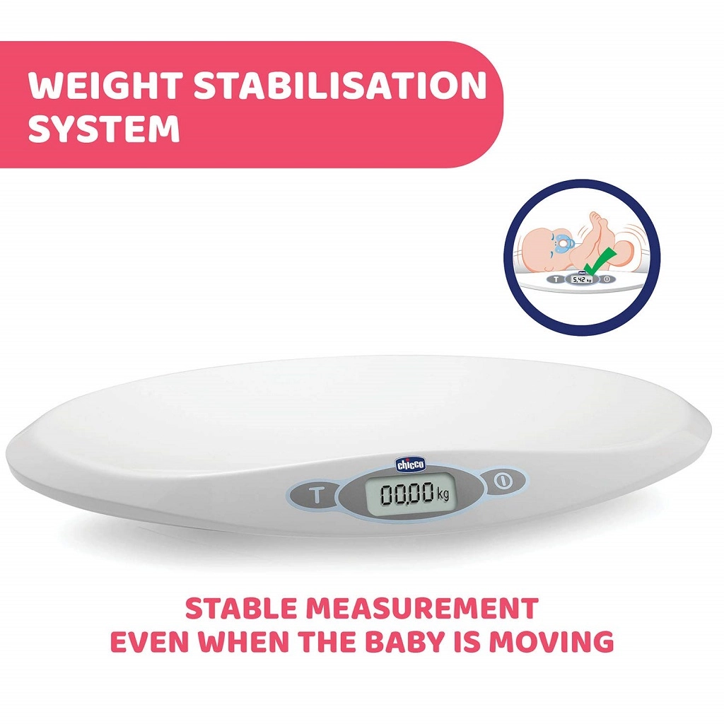 Ergonomiczna i kompaktowa waga dziecięca Chicco Baby Comfort została zaprojektowana do wygodnego ważenia w domu. Dzięki systemowi tłumienia drgań niezawodnie stabilizuje wskazania nawet wtedy, gdy dziecko się porusza, dzięki czemu uzyskasz szybkie i dokładne wyniki. Duży wyświetlacz LCD gwarantuje natychmiastową czytelność, a funkcja pamięci ostatniego pomiaru ułatwia porównywanie wagi w czasie.