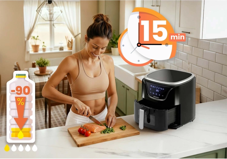 Ciesz się ulubionymi potrawami z nawet o 90% mniejszą ilością tłuszczu. Szybka cyrkulacja gorącego powietrza zapewnia złocistą skórkę na zewnątrz i soczystość w środku – bez zapachu i bałaganu.