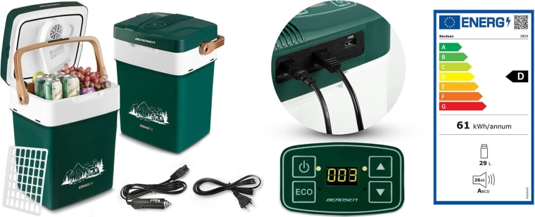 Lodówka samochodowa BERDSEN ICEMAX 29 l łączy lekką i wytrzymałą konstrukcję z inteligentnymi funkcjami do wszechstronnego zastosowania. Dzięki podwójnym ściankom z wysokiej jakości izolacją oraz zintegrowanemu wentylatorowi powietrze cyrkuluje wewnątrz równomiernie, dzięki czemu napoje i żywność są chłodzone lub podgrzewane efektywnie i bezpiecznie. Praktyczna składana rączka pełni jednocześnie funkcję zamknięcia pokrywy z uszczelnieniem, minimalizując straty ciepła.