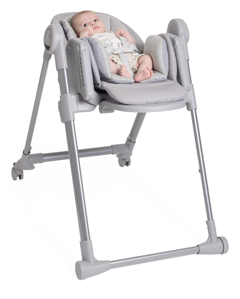 CHICCO Polly Armonia Steel to wielofunkcyjne krzesełko do karmienia o ponadczasowym wyglądzie, łączące wygodę, bezpieczeństwo i długą żywotność. Łatwo dopasujesz je do codziennych rytuałów – od spokojnego odpoczynku noworodka w pozycji leżącej, przez bezpieczne pierwsze posiłki, aż po komfortowe jedzenie przy rodzinnym stole.