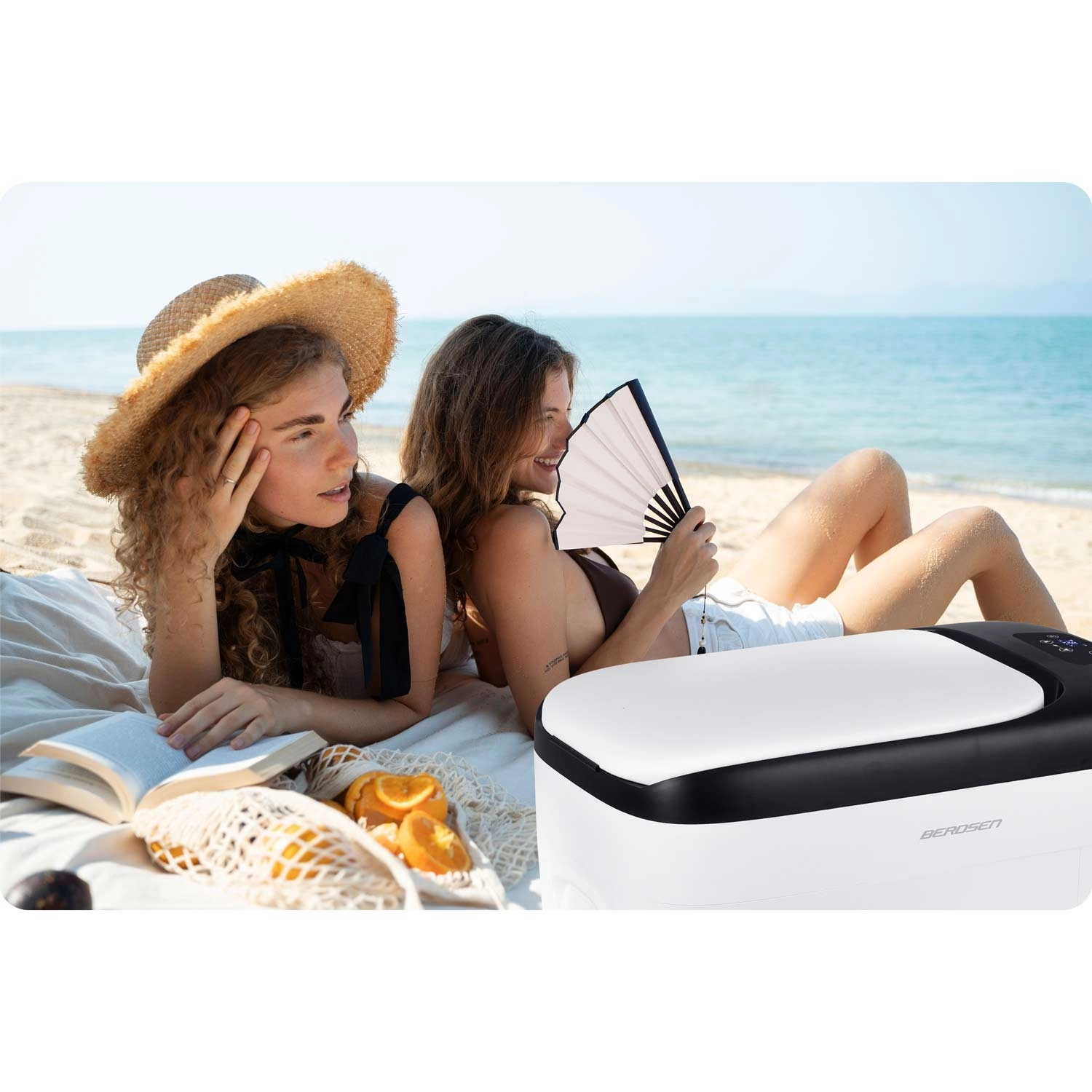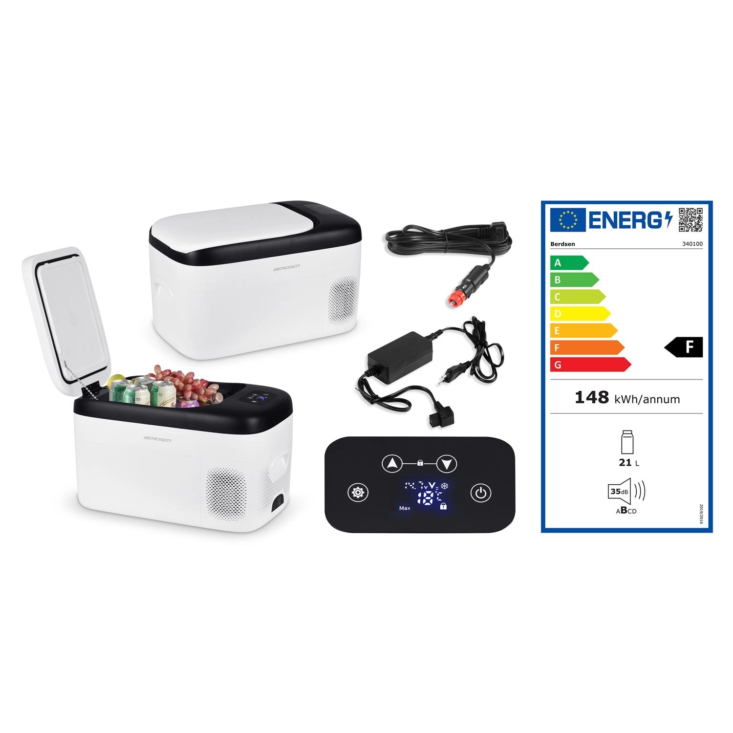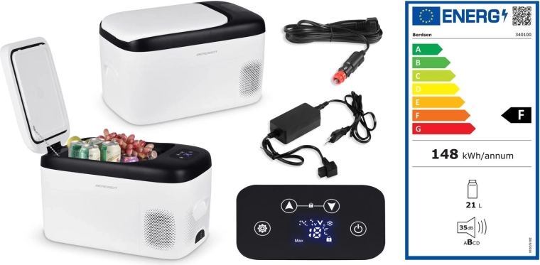 Kompaktowa kompresorowa lodówka samochodowa BERDSEN Icemax 401 o pojemności 21 l jest idealna na plażę, kemping i do kampera. Oferuje chłodzenie i podgrzewanie w zakresie -20 °C do +20 °C, dwa tryby ECO/MAX, cichą pracę do 45 dB oraz cyfrowe sterowanie dotykowe z blokadą Child Lock. Zasilisz ją z 12/24 V w samochodzie oraz z 100–240 V w sieci, w tym ochrona akumulatora i wysokiej jakości izolacja dla stałej temperatury.