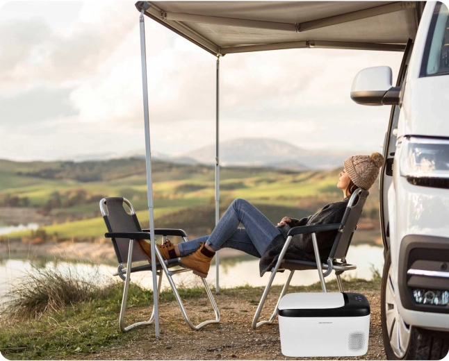 Lodówka wyposażona jest w panel dotykowy z czytelnym wyświetlaczem LED, funkcję Child Lock, 3-stopniową ochronę akumulatora samochodowego oraz podwójne zasilanie 12/24 V DC i 100–240 V AC. Wysokiej jakości piankowa izolacja pomaga utrzymać zadaną temperaturę, a cicha praca do 45 dB nie zakłóca wypoczynku.