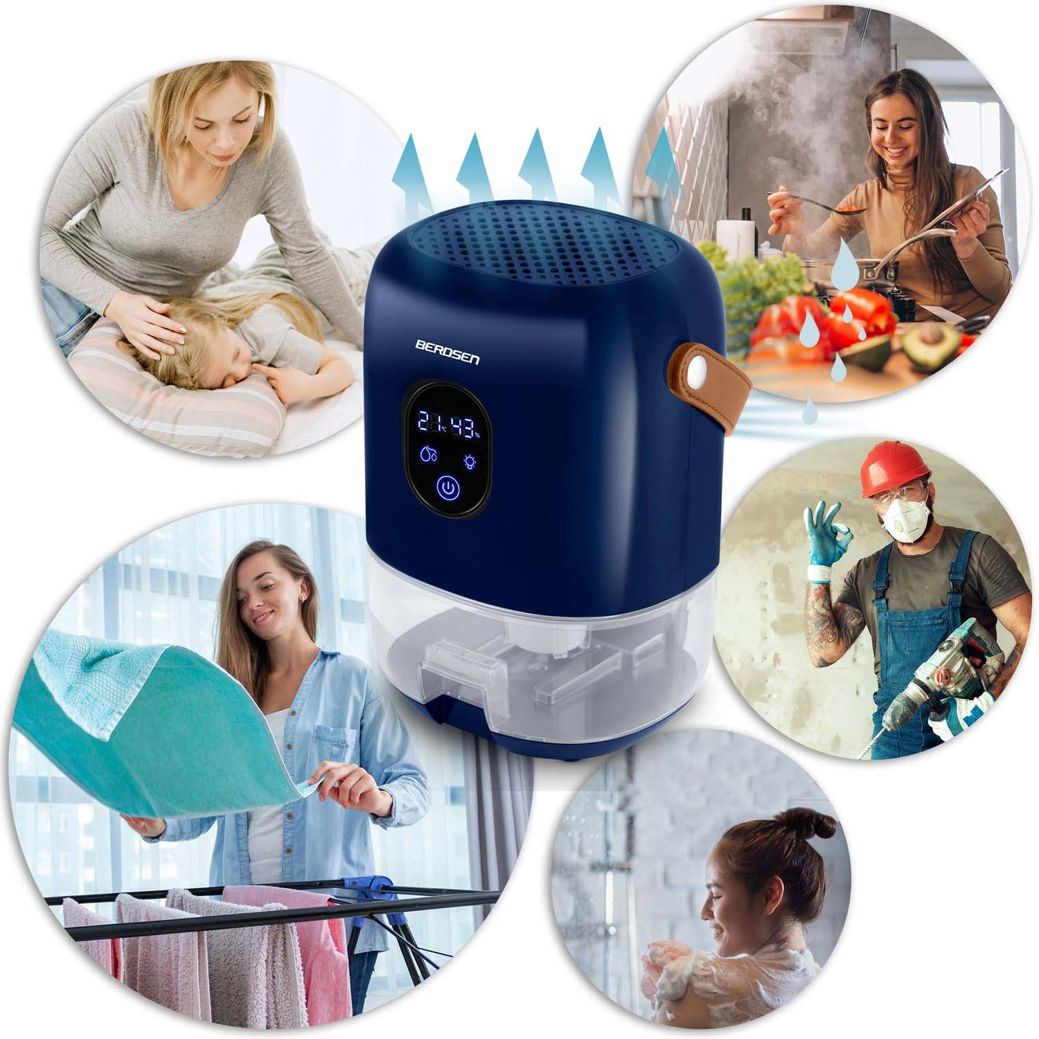 BERDSEN BR-10B to stylowy i wydajny osuszacz, który pomaga redukować nadmierną wilgotność, ogranicza powstawanie pleśni i bakterii oraz przyspiesza suszenie prania. Termoelektryczna technologia Peltiera gwarantuje energooszczędną i cichą pracę, dzięki czemu idealnie sprawdzi się w sypialni, łazience, kuchni i pralni.