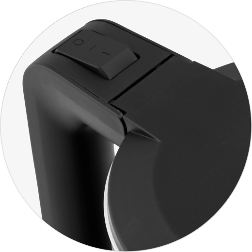 Obrotowa podstawa ułatwia odstawianie z dowolnego kierunku. Ergonomiczny uchwyt, stabilne antypoślizgowe nóżki i schowek na kabel zwiększają komfort każdego dnia.