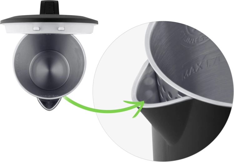 Czajnik zaprojektowano z myślą o wygodzie: obrotowa podstawa 360° dla prawo- i leworęcznych, wyjmowany filtr dla czystego strumienia nalewania oraz automatyczna ochrona przed gotowaniem na sucho dla maksymalnego bezpieczeństwa. Eleganckie podświetlenie LED czytelnie wskazuje pracę urządzenia, a przewód łatwo schowasz w zintegrowanej komorze.